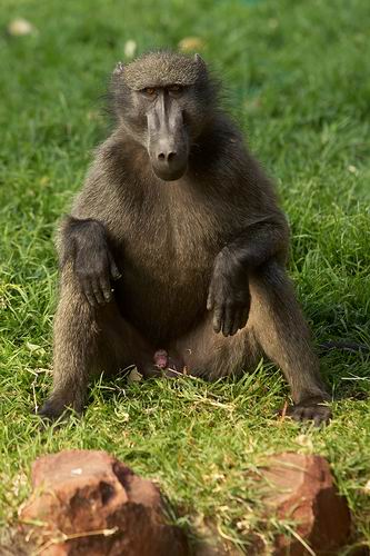 Am Nachmittag besucht uns wieder eine Horde Paviane. Harald macht sich, nur mit Kamera bewaffnet, sofort daran sich unter die Affen zu mischen. Nach etwas Gewöhnungszeit schafft er es endlich sich den Tieren auf Fotodistanz zu nähern und einige Fotos zu schiessen. Der Spaß hat aber schnell ein Ende, denn ein älterer deutscher Bewohner eines Nachbar-Bungalows beginnt damit, die Paviane mit Steinen zu bewerfen. Er hat zwar auch gerade versucht sie zu fotografieren (dilletantisch! Sorry, aber das musste raus!), jetzt hat er es sich aber anders überlegt. Harald beendet das Fotografieren sofort, denn der Aufenthalt unter einer Horde wütender Paviane ist nicht gerade empfehlenswert. Darauf angesprochen, was das ganze soll, antwortet er sehr unhöflich, dass ich gefälligst meine Klappe halten soll. Auf die Idee, dass er mich mit seinem dummen Verhalten in Gefahr gebracht hat, kommt er nicht und es ist ihm auch nicht begreiflich zu machen.