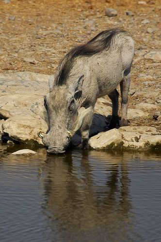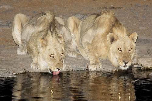 Wenigstens hat es Strom und es ist schön kühl, denn die Festung hat dicke Steinmauern. Das Klo und die Duschen befinden sich "über den Hof" und sind nicht im besten Zustand, aber da muß man durch. Nach dem Auspacken springen wir kurz zur Abkühlung in einen wunderschönen Pool und entspannen ein wenig. Zum Sonnenuntergang gehen wir zum beleuchteten Wasserloch, sind aber etwas enttäuscht, da viel weniger Tiere als am Moringa-Waterhole in Halali auftauchen.