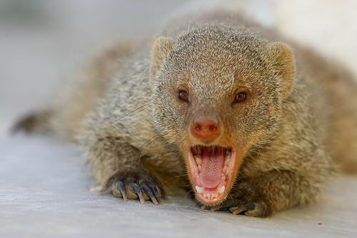 Um die Mittagszeit geht es dann zurück ins Camp, wo wir ein paar freche Zebramangusten beobachten, wie sie die Mülleimer durchsuchen.
