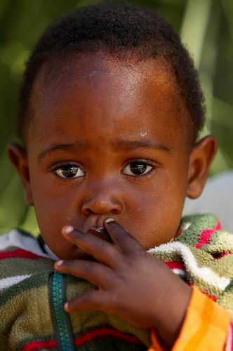 Mit etwas Frust im Bauch geht’s zum Frühstück, das wir anschließend zusammen mit einigen der anderen Gäste zu uns nehmen. Es ist wieder sehr lecker und reichhaltig. Dabei lernen wir auch den 1,5 jährigen Johny kennen, den Sohn einer schwarzen Angestellten auf Tsaobis. Er ist leider etwas schüchtern, aber ein ganz süßer Knopf. Mit der Erlaubnis seiner Mutter machen wir ein paar Fotos von ihm. Schüchtern wie er ist, mag er aber nicht so recht in die Kamera schauen.