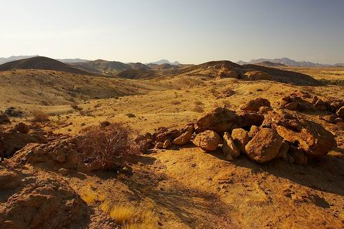 Harald fotografiert natürlich und Sonja trägt tapfer das Stativ. Spätestens jetzt ist auch sie mit dem Kauf des teureren, aber dafür viel leichteren Carbon-Stativs einverstanden. Gegen Ende unserer Tour sehen wir auf einem entfernten Felsen eine Horde Paviane auf dem Weg zu ihrem Nachtlager. Nachdem wir zurück im Camp sind, wird noch schnell geduscht und dann geht's zum Abendessen. Da wir Momentan die einzigen Gäste sind, entwickelt sich ein sehr interessantes Gespräch mit den beiden Besitzern der Farm.