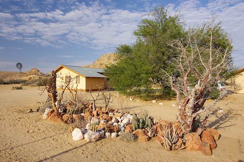 Wir stehen früh auf und packen alles zusammen und ins Auto. Jetzt noch schnell die vorbereitete CD gebrannt und dann geht's zum Frühstück und zum Zahlen. Wir nehmen noch ein paar Souvenirs (die ersten) und Postkarten mit und schenken Yolanda die CD, die sich sehr darüber freut. Danach folgt die Verabschiedung und wir machen uns (auch mit einem traurigen Auge) auf den Weg. Die 11km Dirt Road auf dem Gelände von Tsaobis gehen diesmal viel lockerer vorbei. Vielleicht hilft uns die Info von Polla, das hier regelmäßig ein Tanklaster vorbeikommt, um Diesel für den Generator zu liefern ;-)