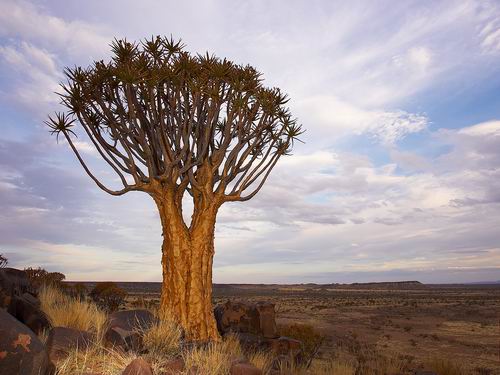 Haralds Wecker klingelt um 5 Uhr, denn er will zum Sonnenaufgang im Köcherbaumwald sein. Ein prüfender Blick gen Himmel läßt den Gedanken an Fotos gleich wieder verschwinden, denn der Himmel zeigt sich grau in grau.