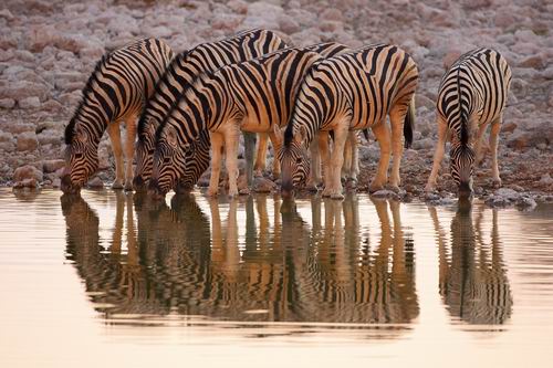 Fotos > Tiere > Huftiere > Zebras > An der Tränke nach Sonnenuntergang (Etosha)